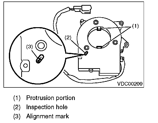 10) Turn the protrusion portion of new steering angle sensor to match the alignment mark of inspection hole.