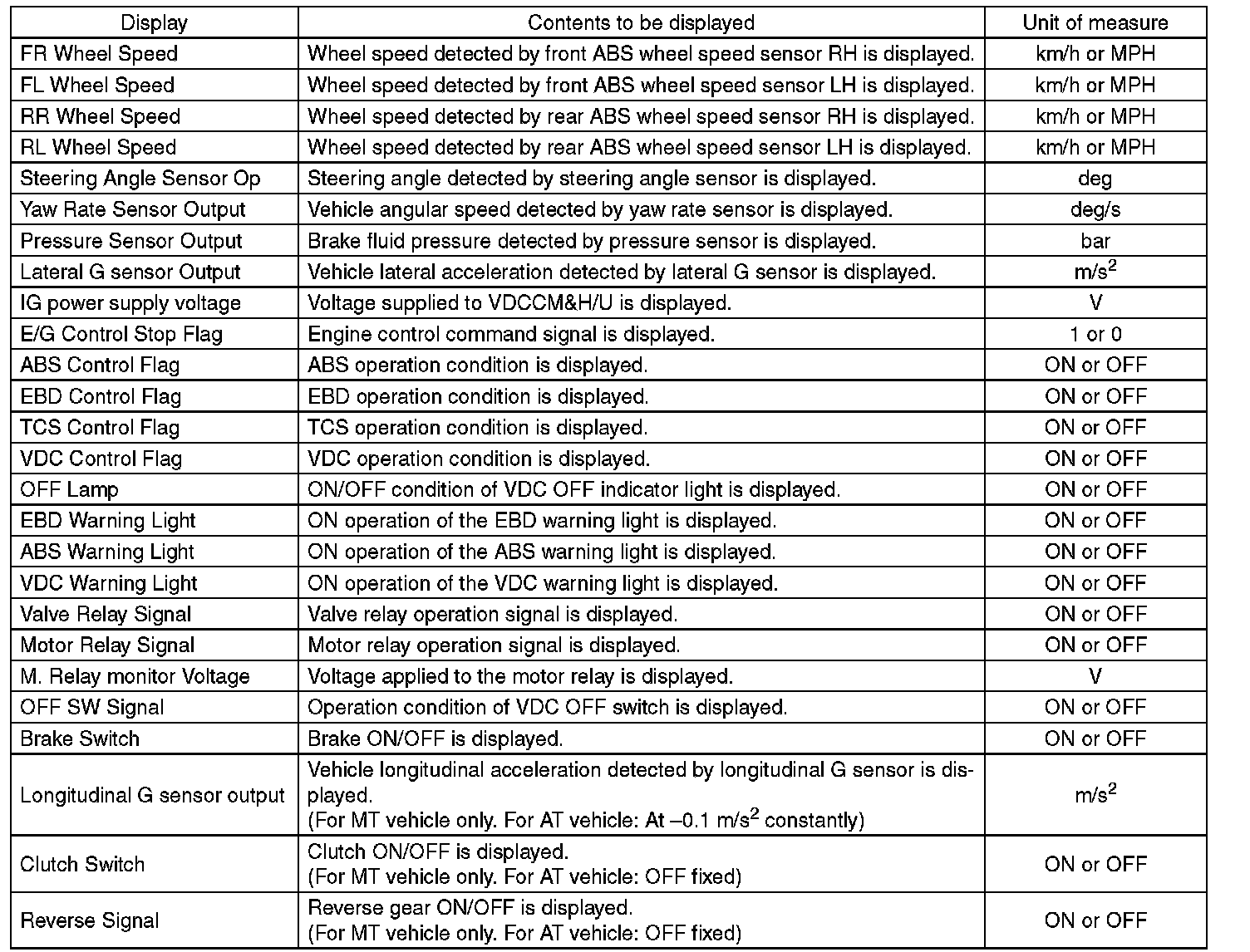 ^ When no data is registered, ABS/EBD/VDC warning light illuminates and the DTC "Parameter selection error" is detected.