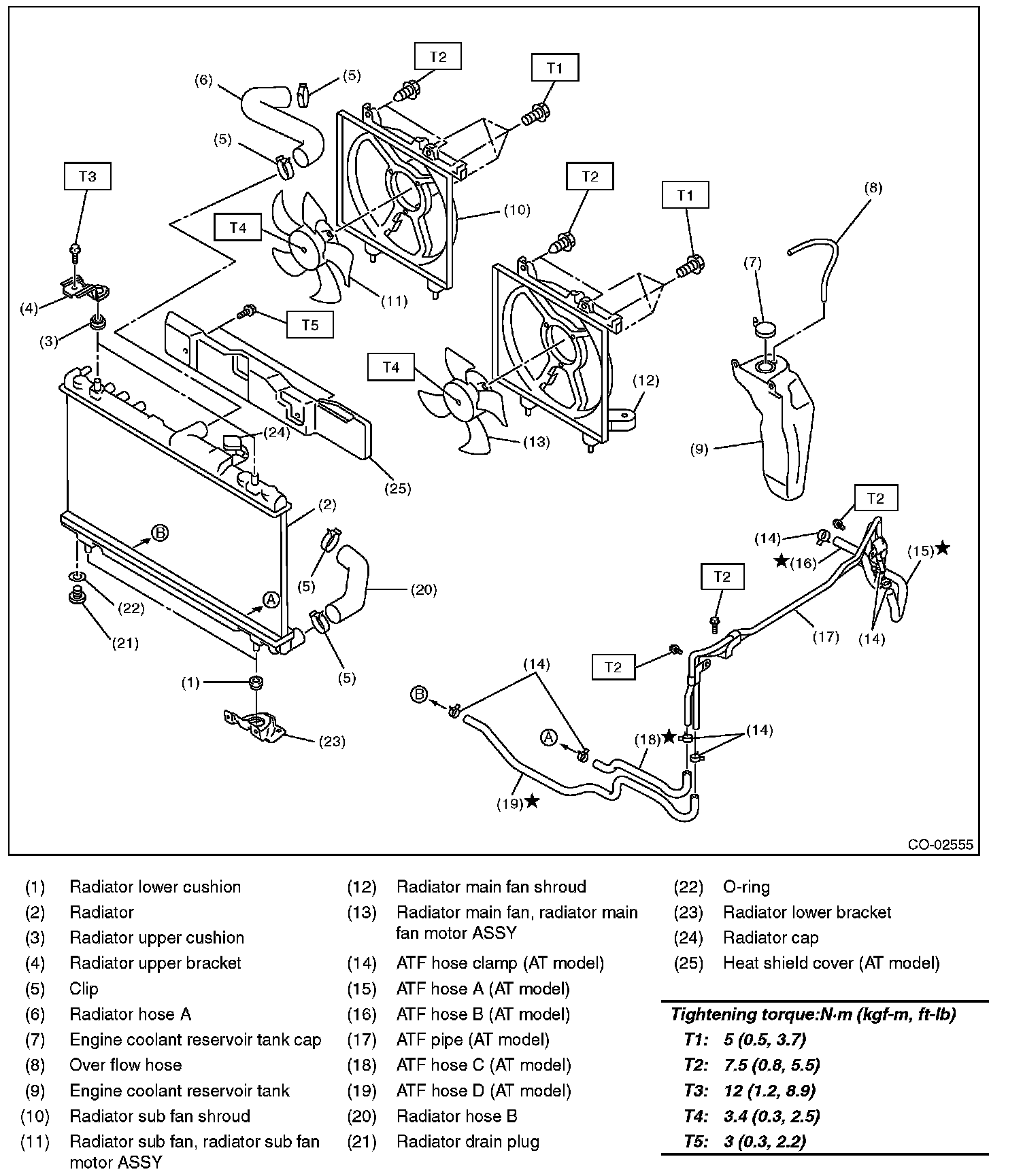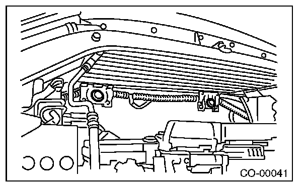 5) Remove the heat shield cover from radiator. (AT model)