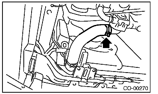 14) Disconnect the radiator inlet hose from the radiator.