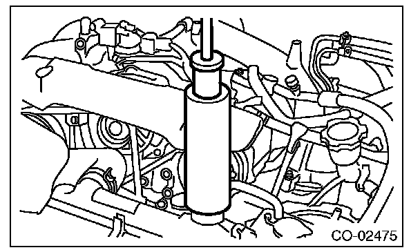 3) Remove the radiator cap, fill the radiator with engine coolant, and then install the radiator cap tester to the filler neck of radiator.
