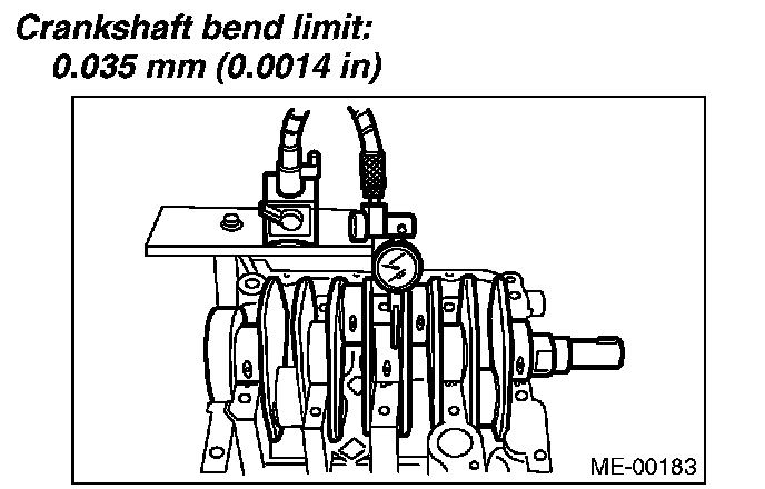 2) Measure warping of the crankshaft. If it exceeds the limit, correct or replace it.