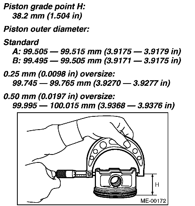 ^ Standard sized pistons are classified into two grades, "A" and "B". These grades should be used as guide lines in selecting a standard piston.