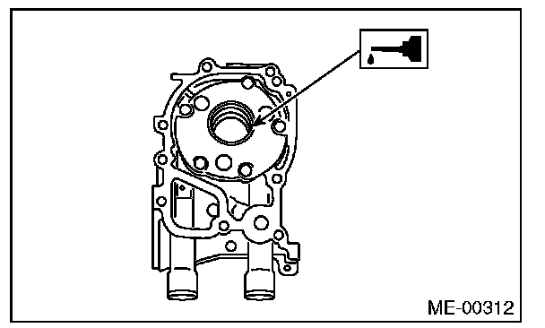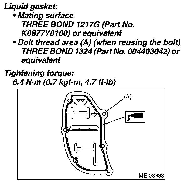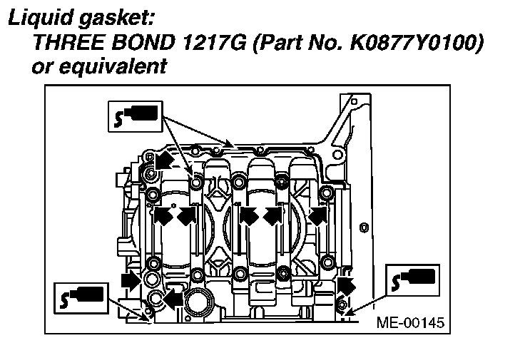 ^ Do not allow liquid gasket to jut into O-ring grooves, oil passages, bearing grooves, etc.