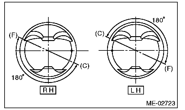 17) Position the expander gap at (F) in the figure on the 180° opposite direction of (C).