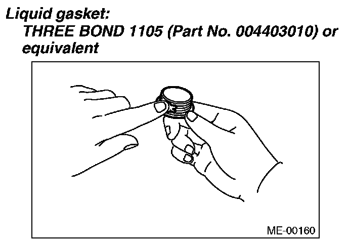 5) Apply liquid gasket to the threaded portion of the service hole plug.