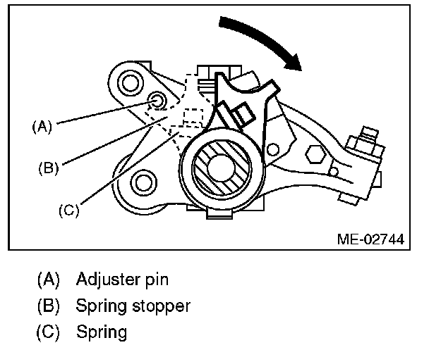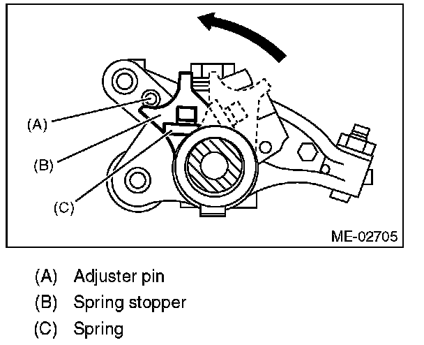 1) Use the ST to rotate the spring stopper in the direction of the arrow to remove it from adjuster pin.