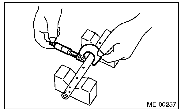 1) Measure the inner diameter of valve rocker arm and outer diameter of valve rocker shaft, and confirm the difference (oil clearance) between the two values.
