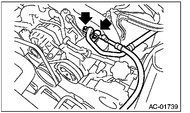 7. Remove the bolt and remove the low-pressure hose and high-pressure hose.