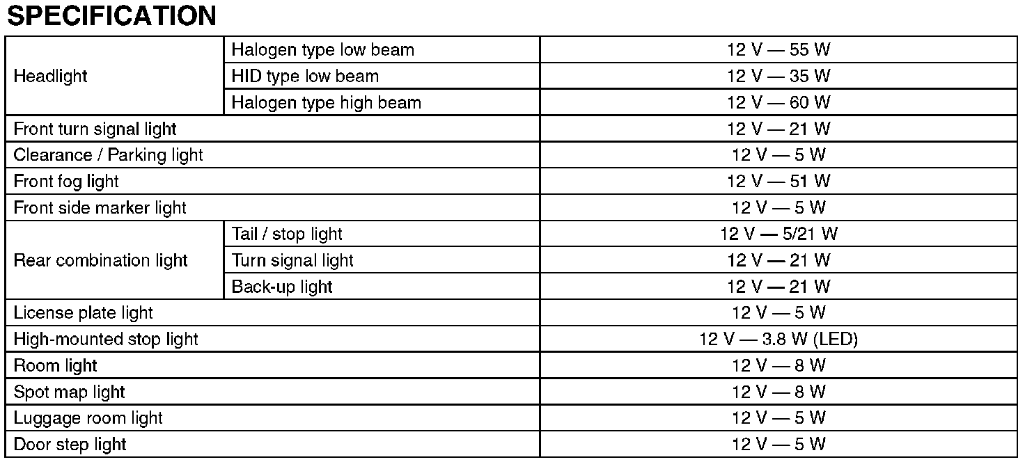 Lighting and Horns: Specifications
