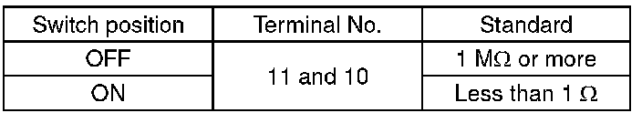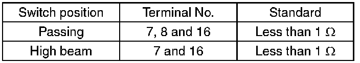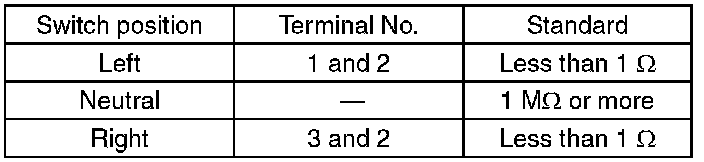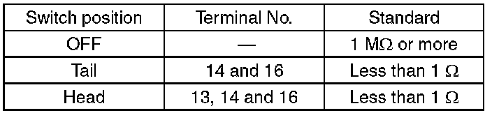 Measure the resistance between combination switch terminals.