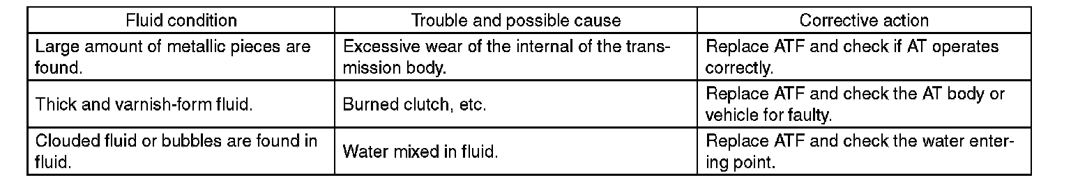 When replacing ATF, check the inside condition of transmission body by inspecting the drained ATF.