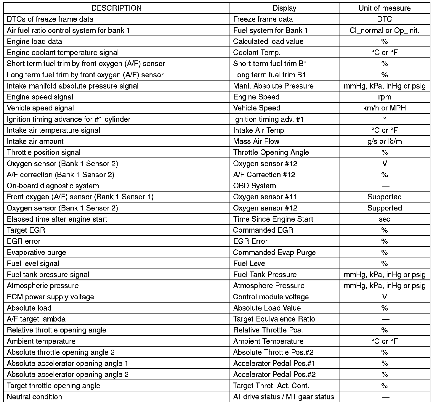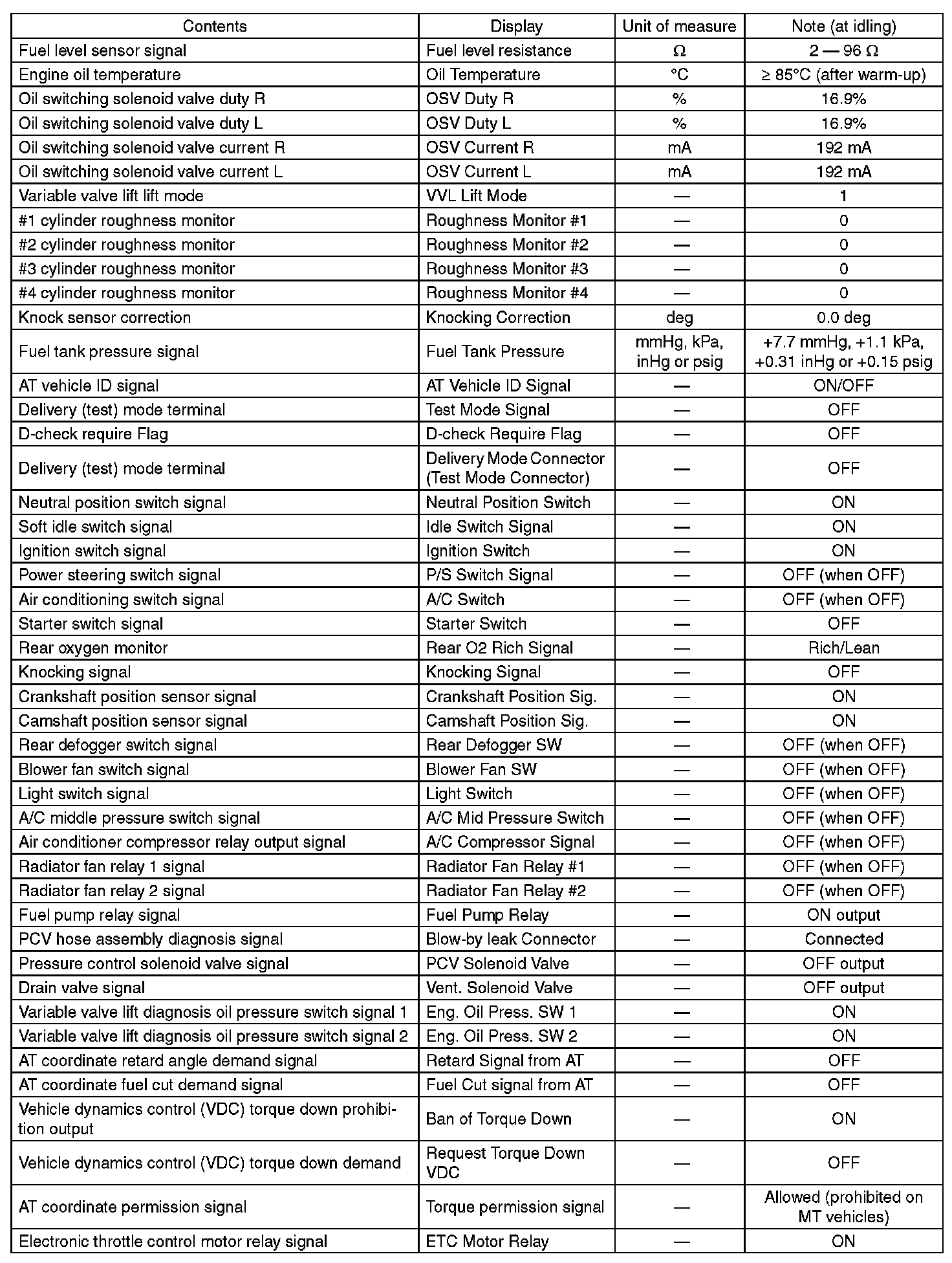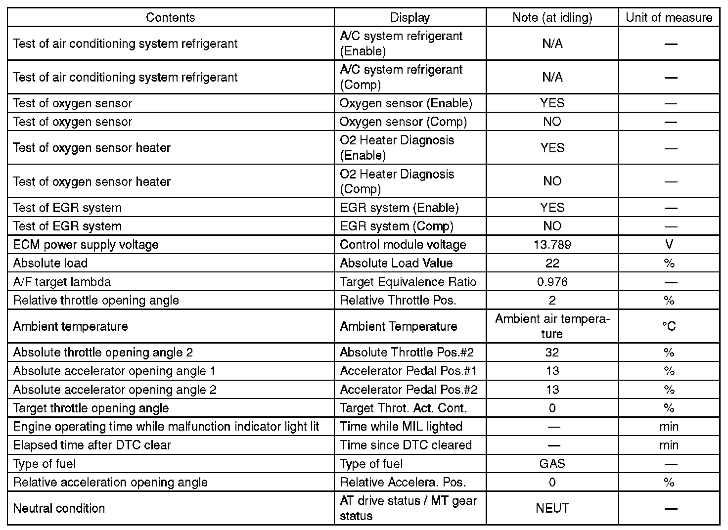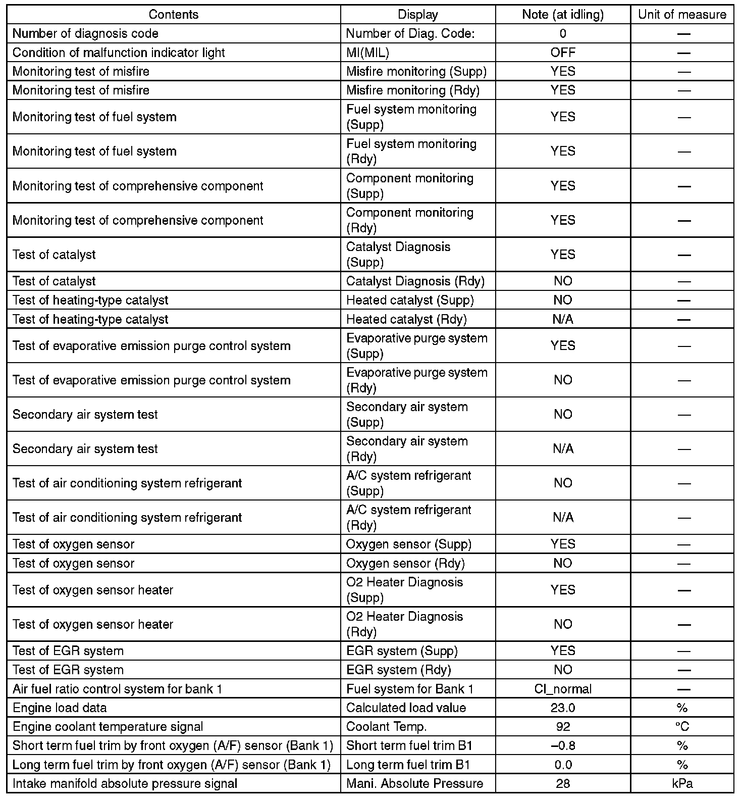 3. READ CURRENT DATA FOR ENGINE (OBD MODE)