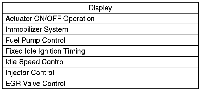 1. On {{System Operation Check Mode}} display, select {Idle Speed Control}.