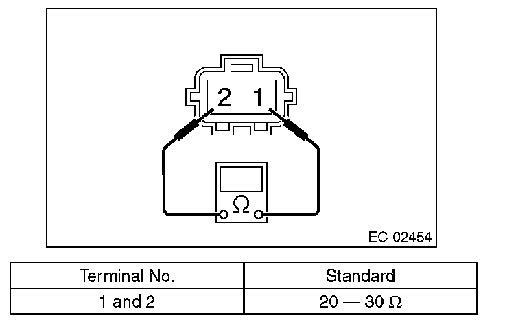 2. Measure the resistance between the pressure control solenoid valve terminals.