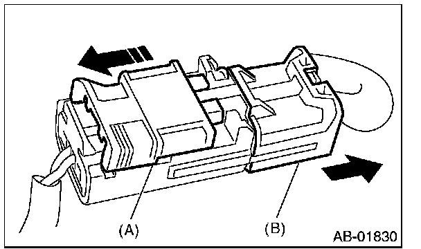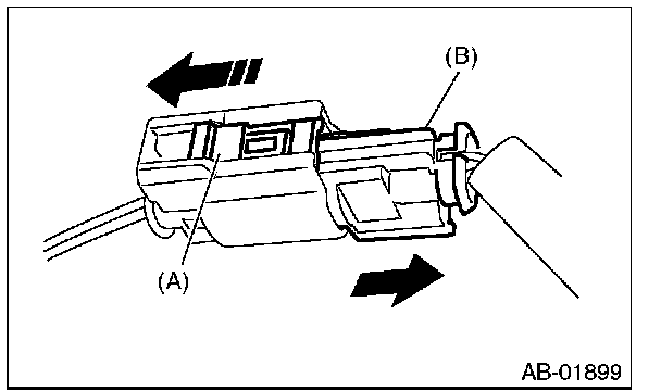 2. With the slide lock (A) moved, pull the connector (B) in the direction of arrow.