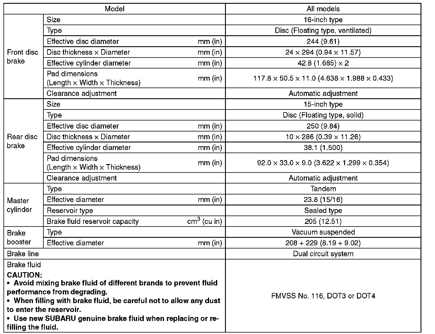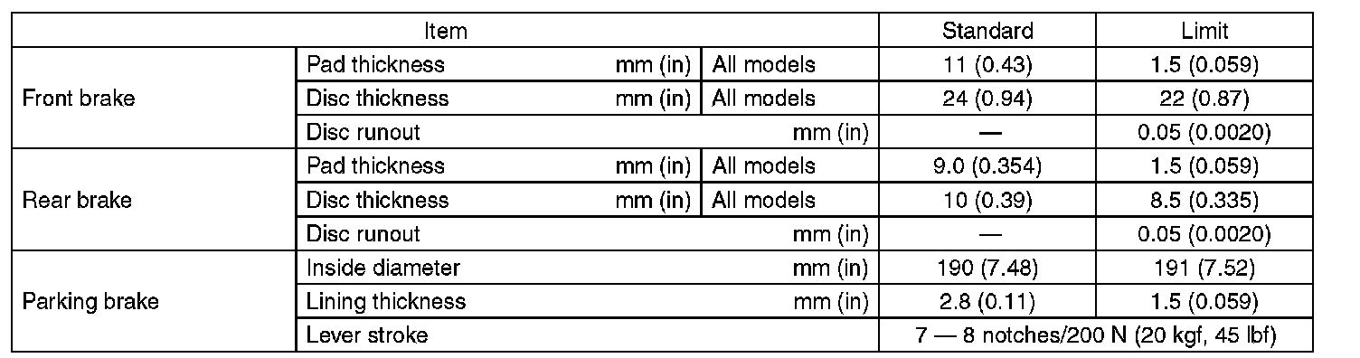 Refer to "PB" section for parking brake specifications.
