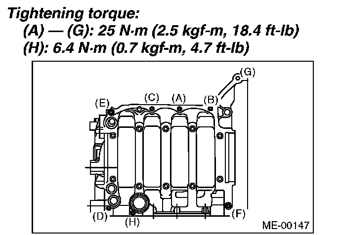 Tighten the 8 mm and 6 mm bolts on the LH side (A - H)