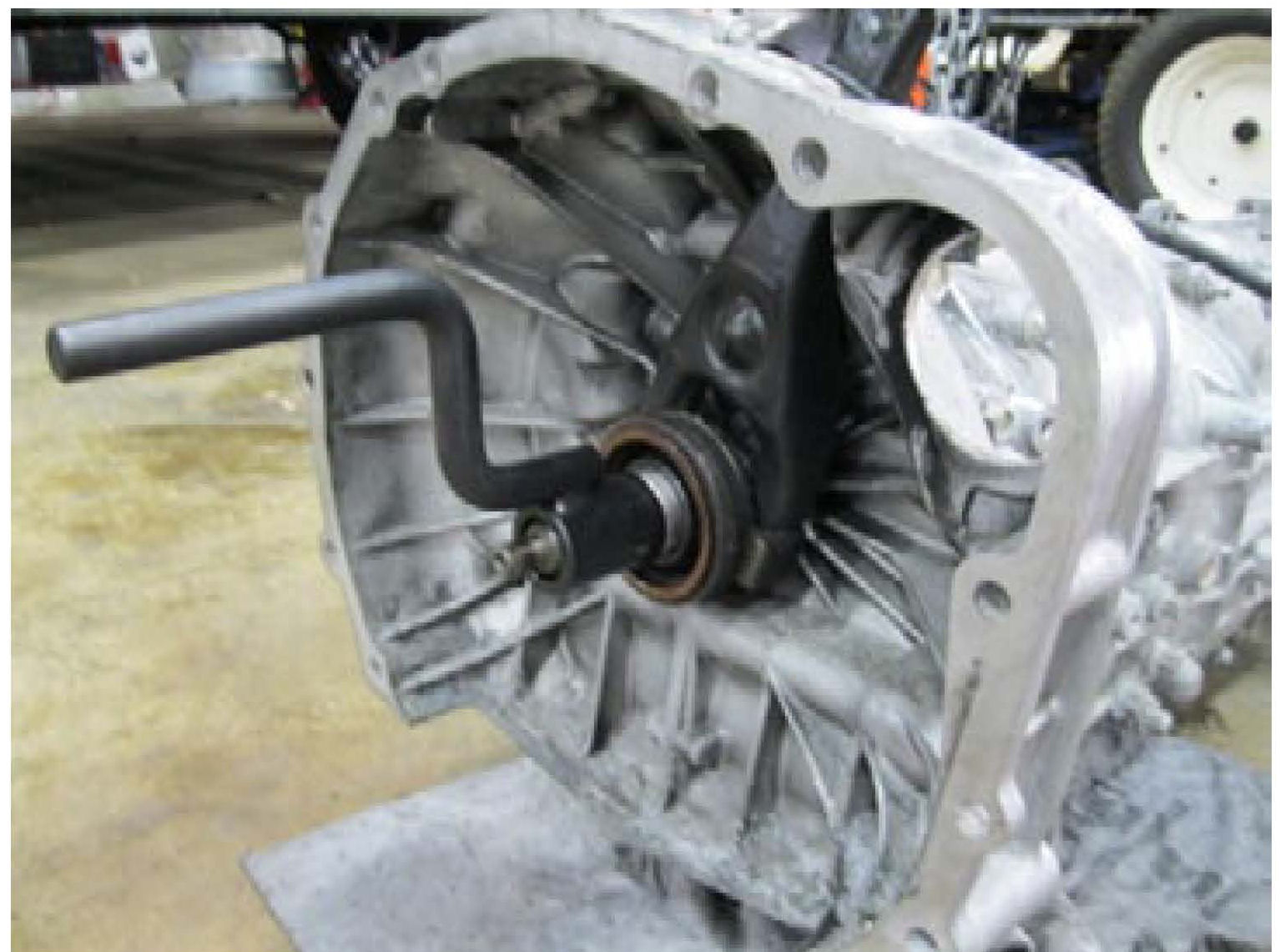 9. For the rotation of the input shaft, the transmission needs to be placed in 4th gear. A screwdriver may be used to assist with moving the shift linkage.