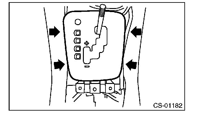 7) While pressing the shift lock release button, shift the select lever to the "N" range.