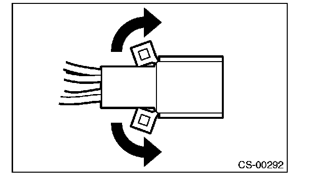 12) Using a flat tip screwdriver with a thin tip, disconnect the terminals of "P" range switch and shift lock solenoid unit from the connector.