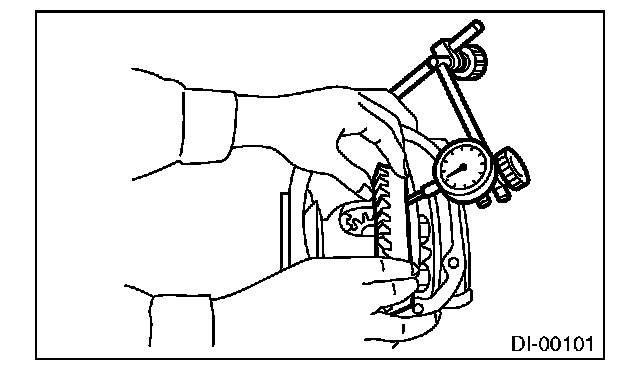 Using a dial gauge, check the backlash of hypoid driven gear.