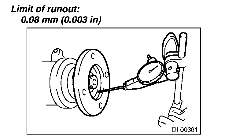 6) If the runout exceeds the limit after replacing the companion flange, the drive pinion may be assembled incorrectly or bearing is faulty.