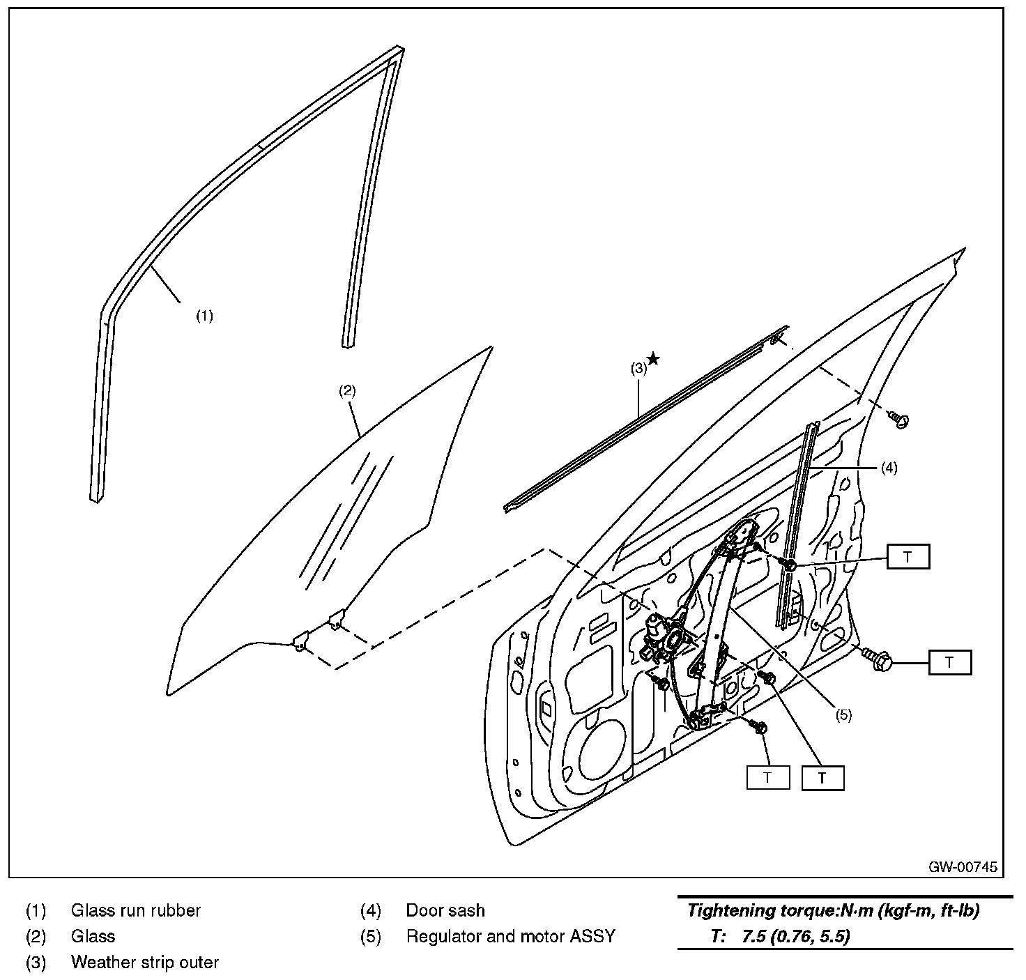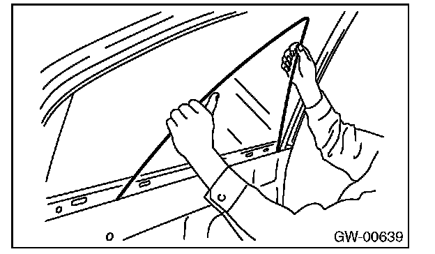 CAUTION: Make sure that the glass run rubber is affixed securely to the door frame and sash.