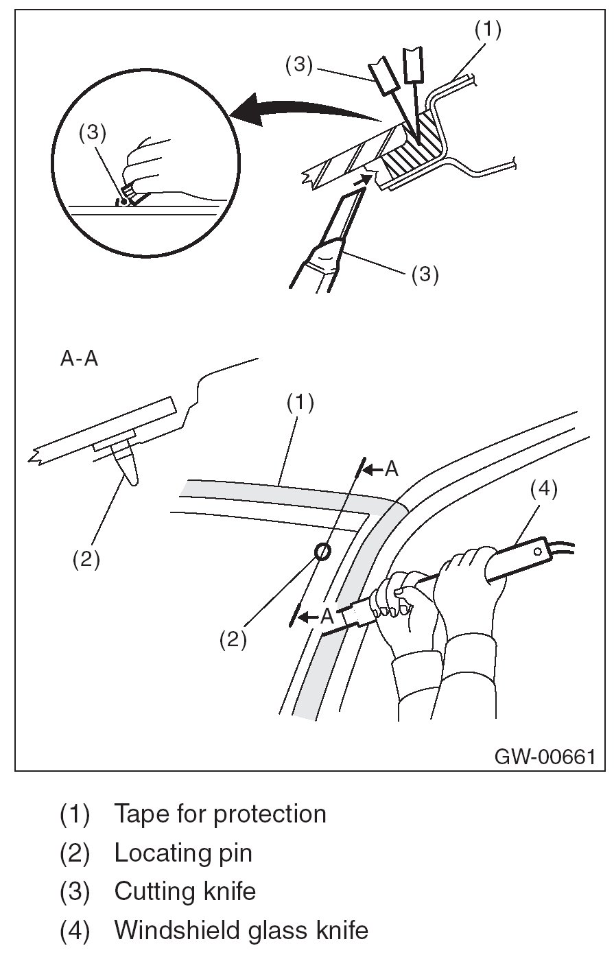 - Cutting of adhesive part shall be started with wider gap between windshield glass and body.