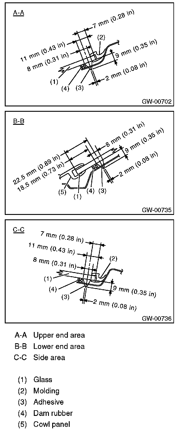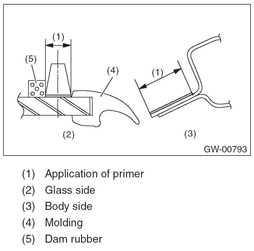 - For minimum drying time and vehicle standing time before driving after bonding, follow instructions or instruction manual from the adhesive manufacturer.
