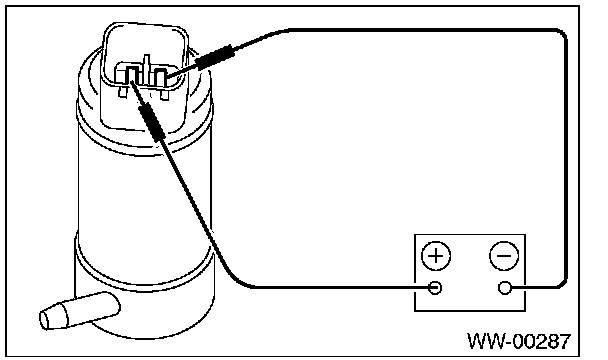 Apply battery voltage to the connector terminal of the washer motor and make sure that the motor operates.