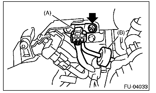 2. Disconnect the connector from manifold absolute pressure sensor (A), and remove the filter assembly (B) from intake manifold.