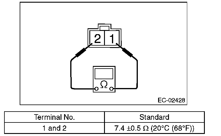 Measure the resistance between the oil flow control solenoid valve terminals.