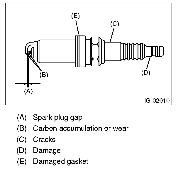 Check the electrodes and inner and outer ceramic insulator of plugs, noting the type of deposits and the degree of electrode erosion.
