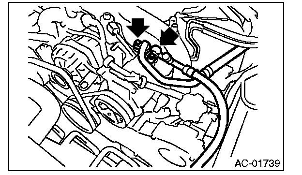 7. Remove the bolt and remove the low-pressure hose and high-pressure hose.