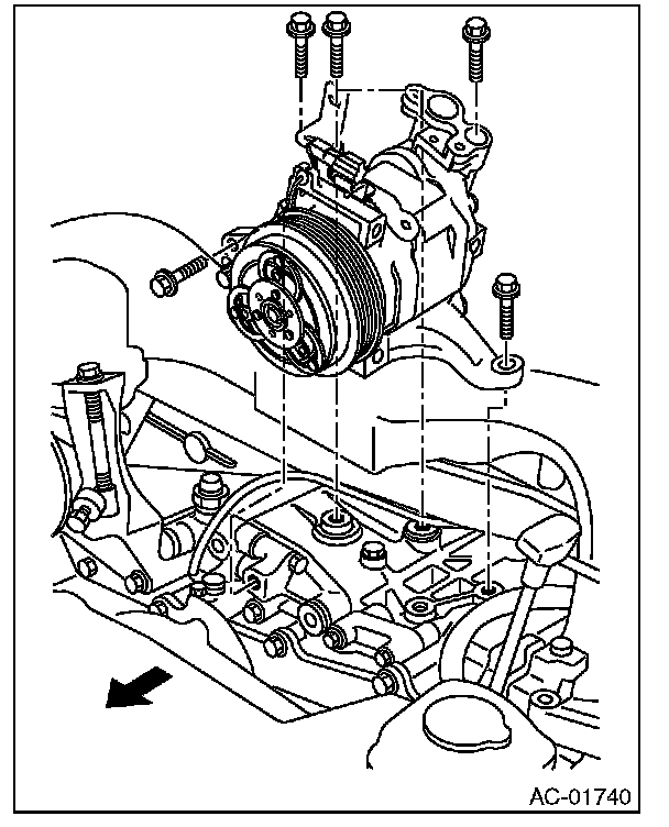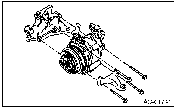 2. Replace the O-rings on low-/high-pressure hoses with new parts, then apply compressor oil.