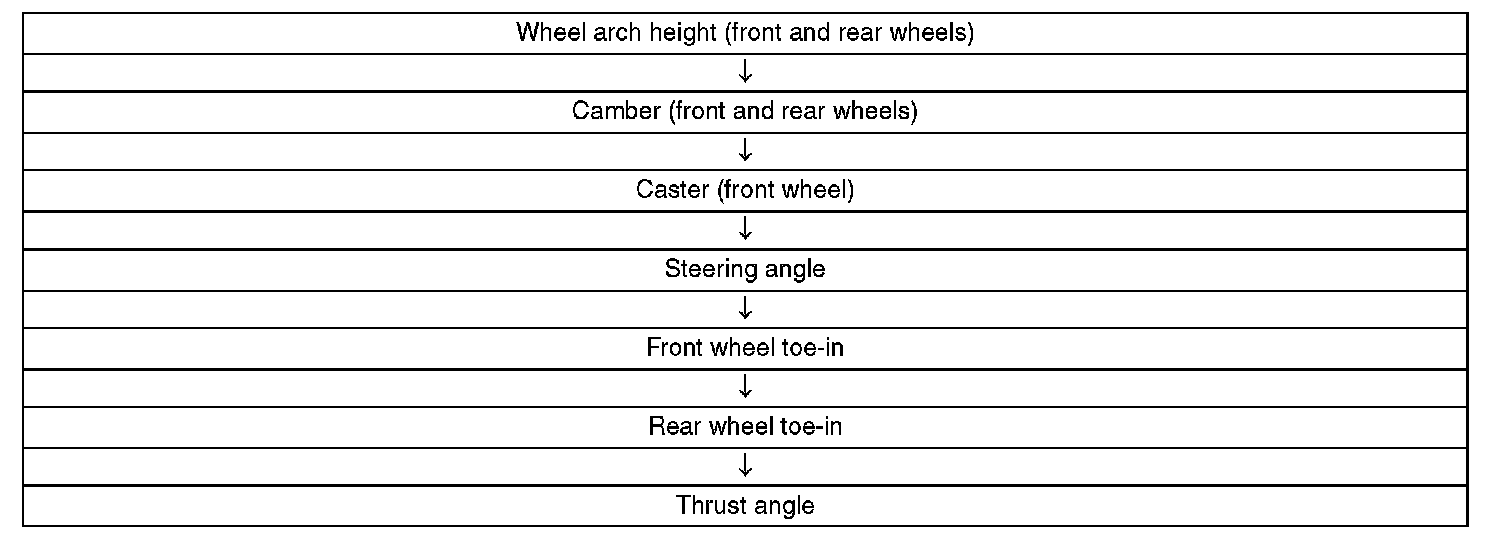 Check, adjust and measure the wheel alignment in accordance with the procedures indicated in the figure.