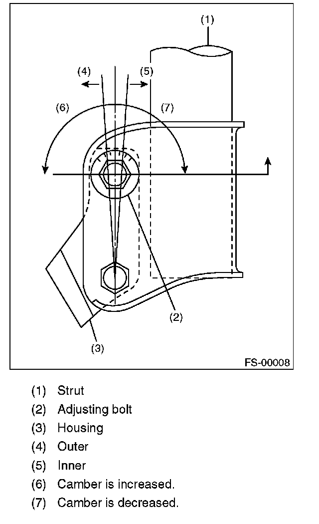 3) Turn the camber adjusting bolt so that the camber is set at specification.
