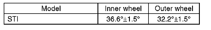 1) Check that the left and right wheel steering angles are within specification.