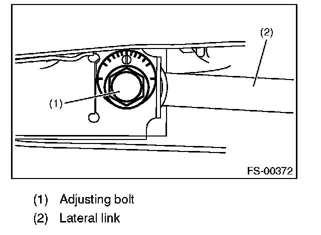 1) Make thrust angle adjustments by turning the toe-in adjusting bolts of the rear suspension equally in the same direction.