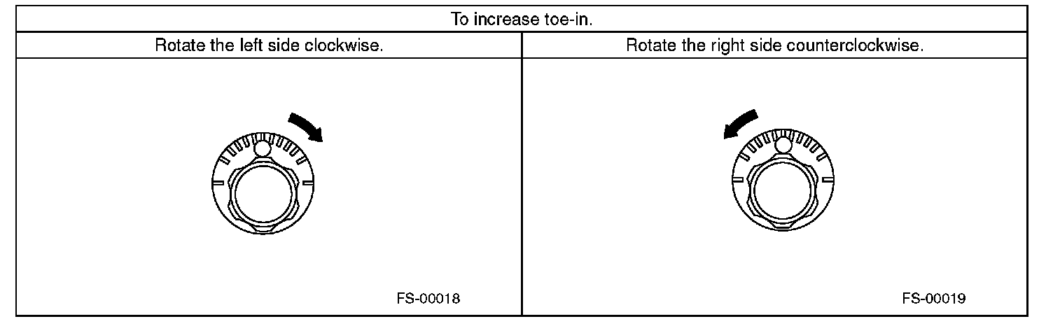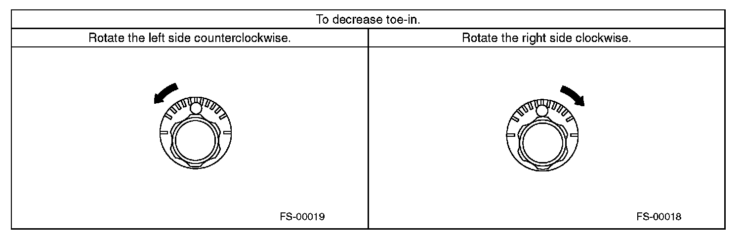 2) When one rear wheel is adjusted in a toe-in direction, adjust the other rear wheel equally in toe-out direction, in order to make the thrust angle adjustment.