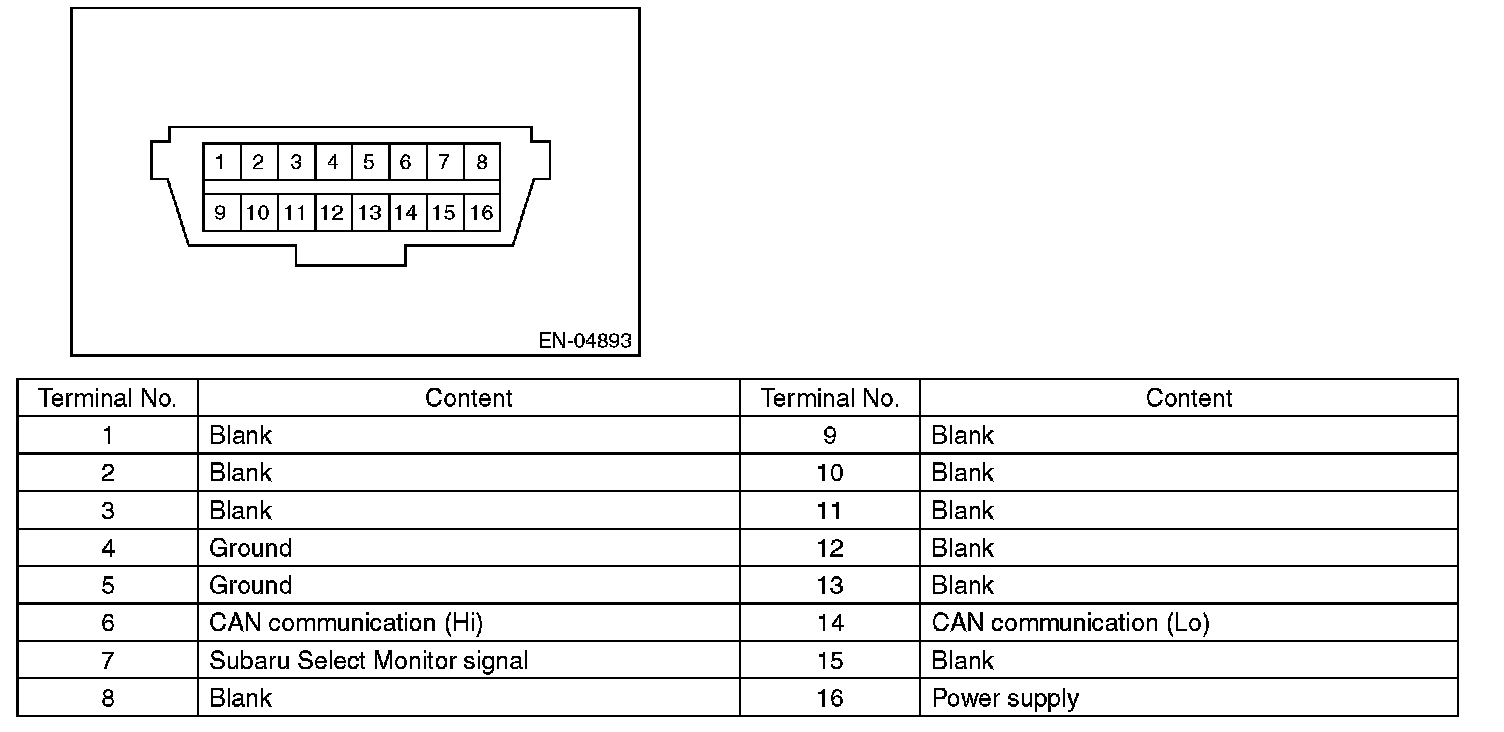 CAUTION: Do not connect any scan tools other than Subaru Select Monitor or general scan tool because the circuit for Subaru Select Monitor may be damaged.