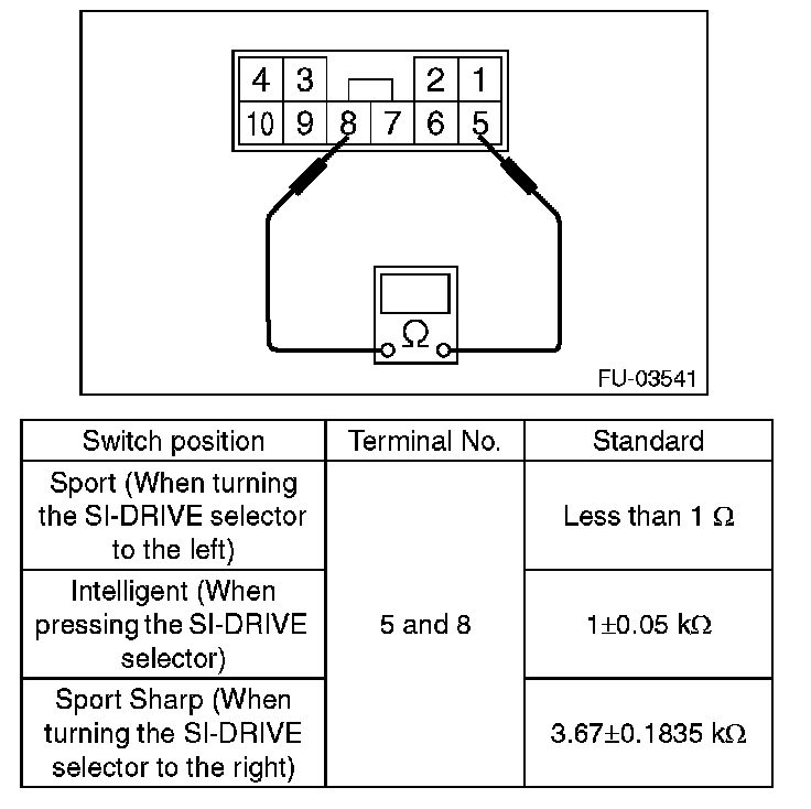 Measure the resistance between terminals of the SI-DRIVE selector.