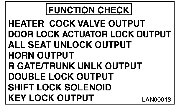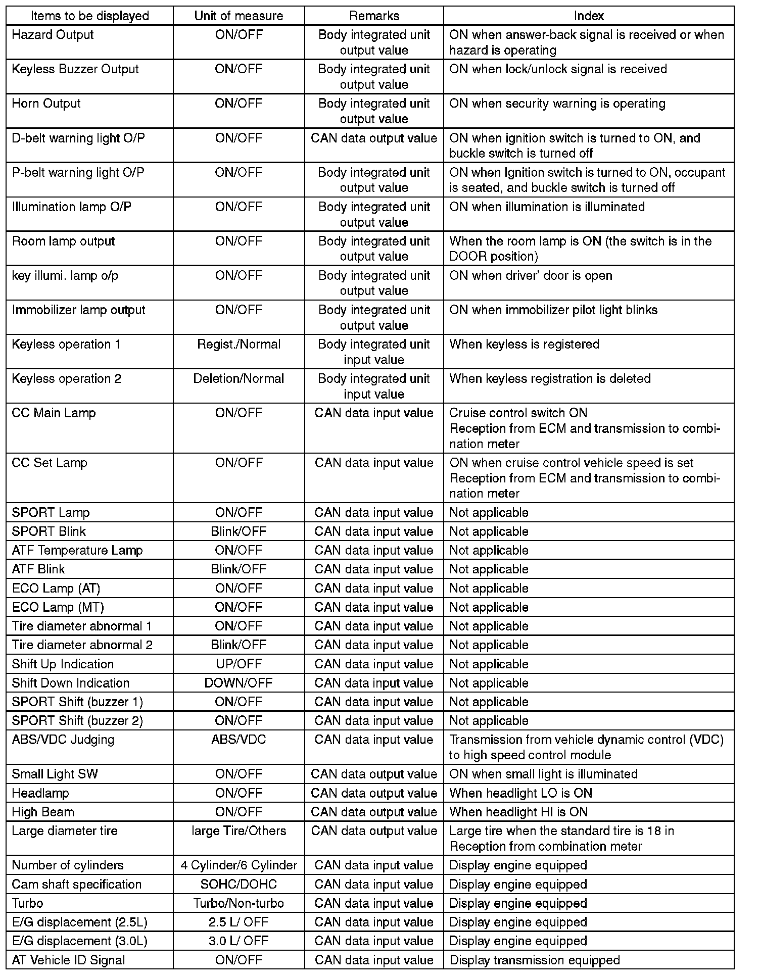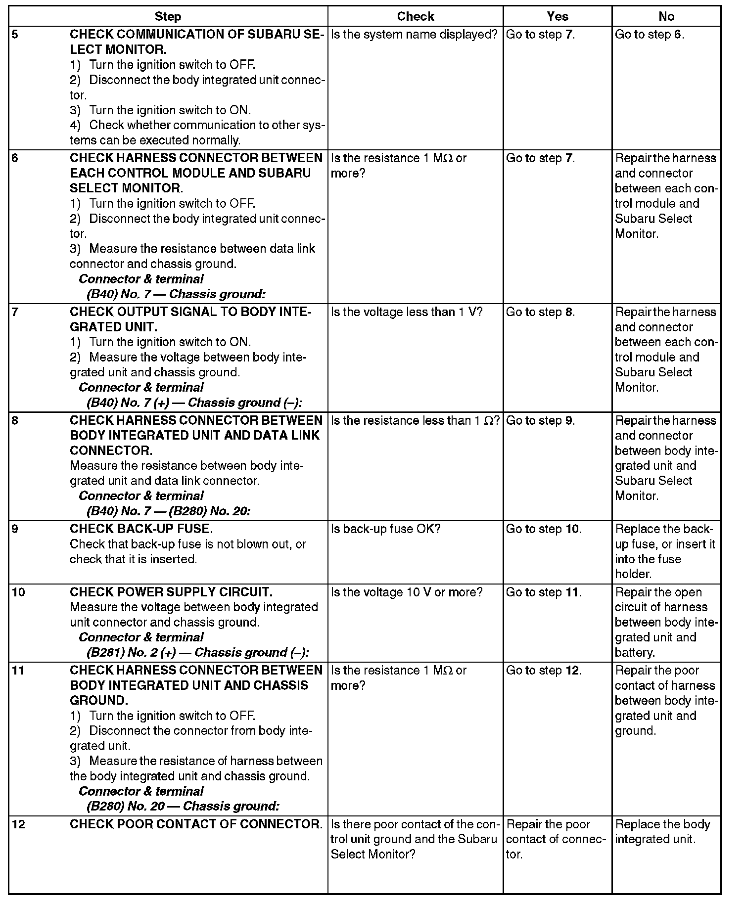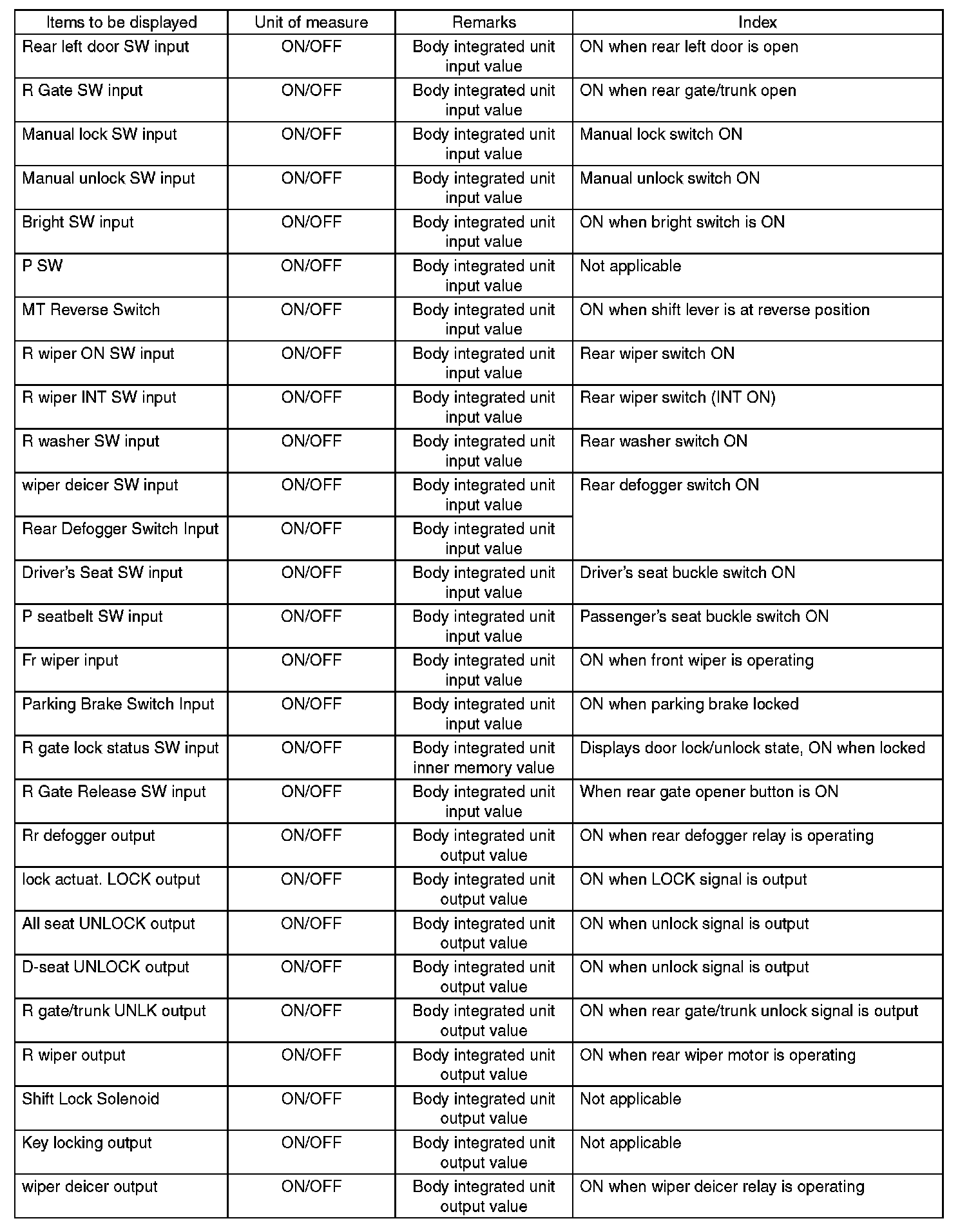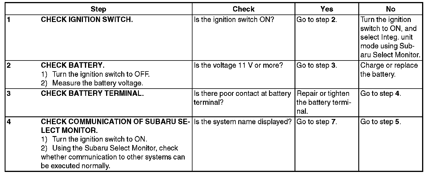 In order to check the body integrated unit function, inspect the body integrated unit and actuator using Subaru Select Monitor without operating switches.