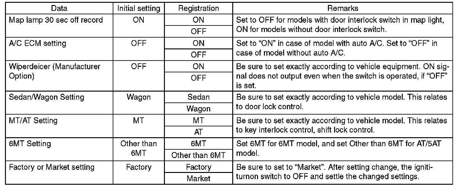 If registrations and function setting are different from vehicle equipment, vehicle system does not operate normally and diagnosis cannot be performed correctly. Pay attention to following item.