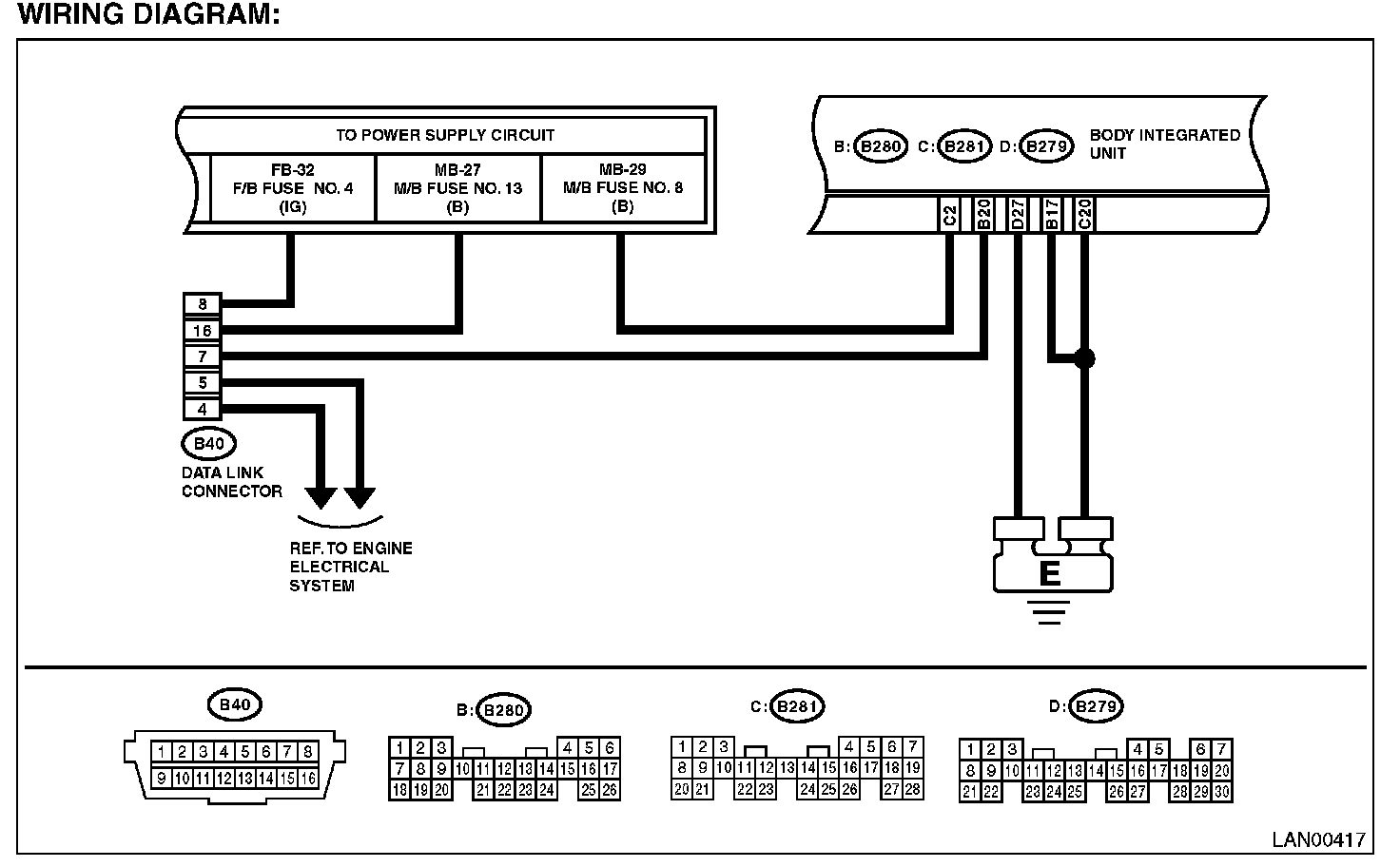 CAUTION: For model with immobilizer, immobilizer registration work is necessary when the body integrated unit replaced. For details, refer to the "PC application help for Subaru Select Monitor".