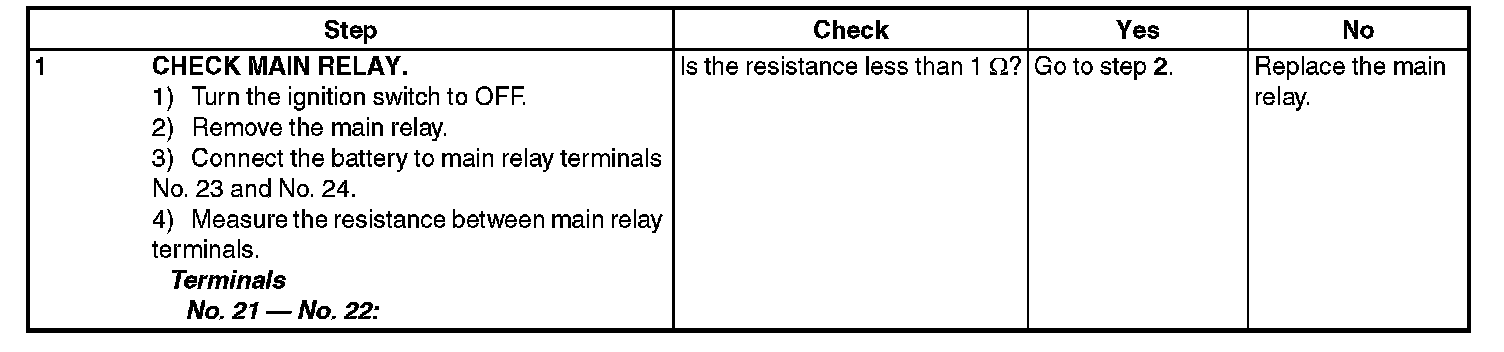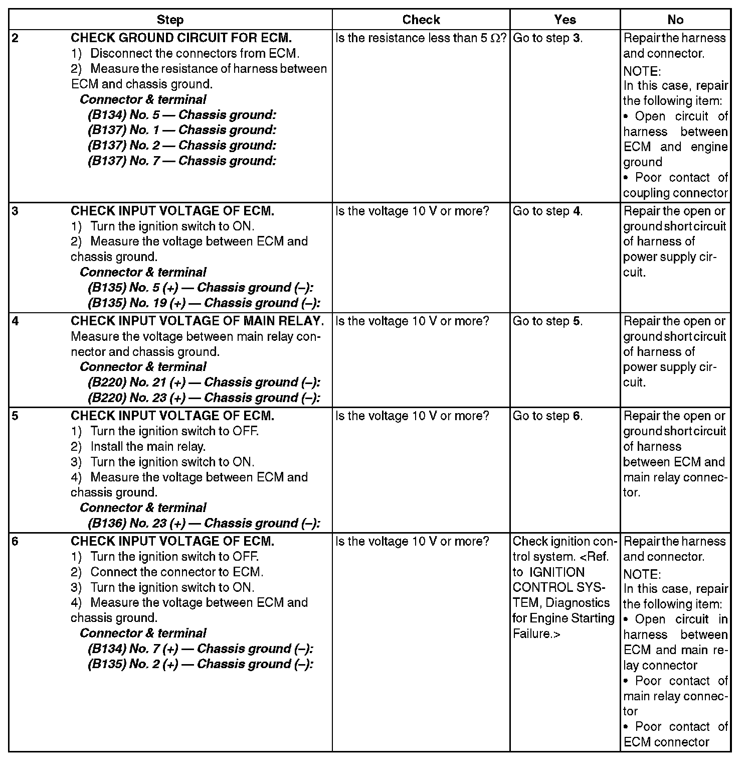 CHECK POWER SUPPLY AND GROUND LINE OF ENGINE CONTROL MODULE (ECM)CAUTION: After servicing or replacing faulty parts, perform Clear Memory Mode Clear Memory Mode, and Inspection Mode Preparation For the Inspection Mode.