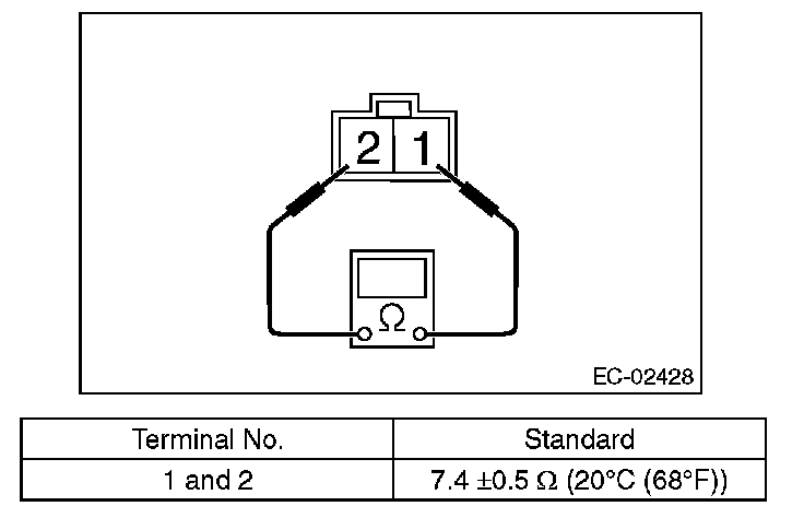 Measure the resistance between the oil flow control solenoid valve terminals.