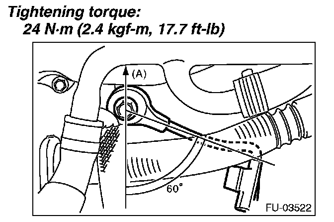 NOTE: The portion of the knock sensor cord that is pulled out must be positioned at a 60 ° angle relative to the engine rear.
