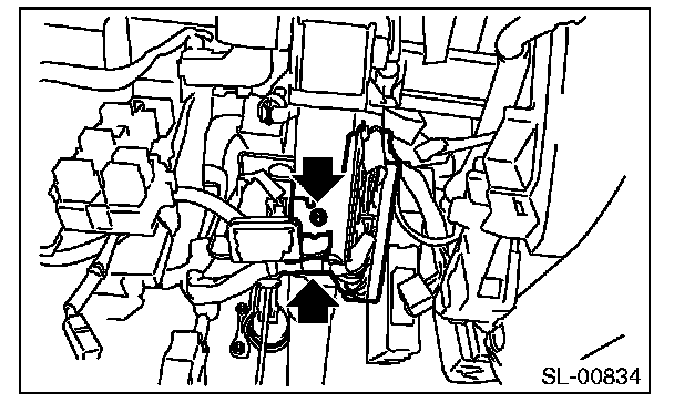 5. Remove two mounting nuts for body integrated unit bracket, and remove the body integrated unit.